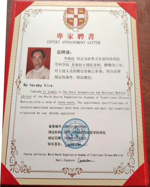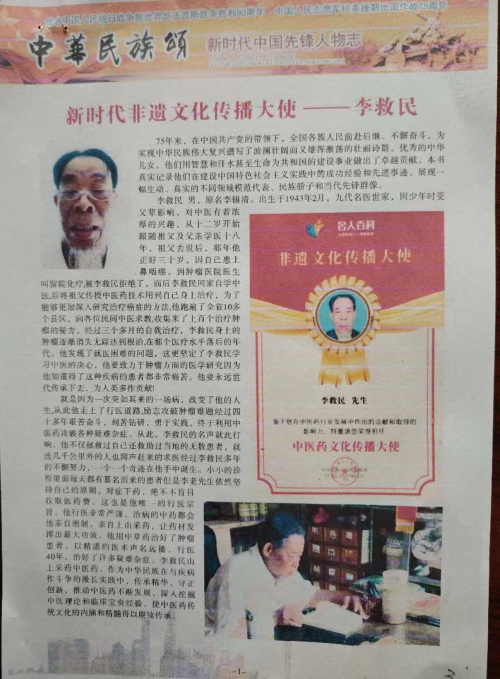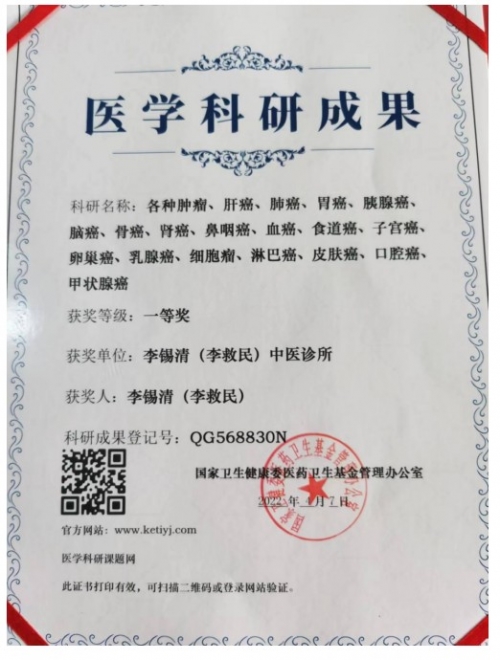 李救民见证文肿瘤是人类最大天敌,也是世界医学的难题。现在肿瘤的发病率猛速发展,全国每年发病率高达千万人。李救民立志要攻破肿瘤为民解难,多年他一直致力于发扬传承传统中医,改良创新发展中医,让越来越多的人了解中医,相信中医,喜欢中医。获得了各级政府和患者的高度赞誉和一致好评。