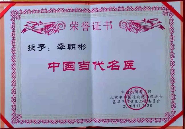 健康是国富民强的主要标志。基层医生是构筑“全民健康”的基础力量,是基层百姓的健康“守门人”。他们既有精通中医并发扬突破的高人,也有凭借秘方福泽一方的名医,以翔实可循的案例让人信服,书写着一个又一个人间奇迹。李朝彬老师由一名平凡的医者,成为如今中医药学的中坚力量,他“医德高尚、医术高超、勇于探索,在医学科学研究的道路上不懈追求;用责任与担当不断创新研发新技术成果,用行动为人民生命健康保驾护航。