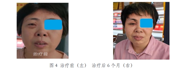 病例 3:下口唇基底细胞癌下唇肿物呈菜花状隆起,高龄。2023 年 9 月 24 日全麻后行超高温适温消融术,住院4天,术后 3 个月结痂脱落,6 个月后口唇形态基本恢复,无畸形(图 3)。治疗总费用6184.86元。